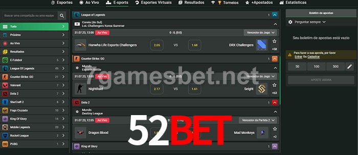 O 52bet oferece uma grande seleção de opções de apostas em e-sports com probabilidades competitivas